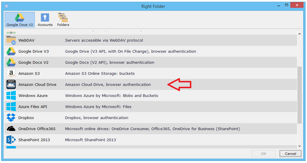 3) Select one of the sides (folders) which you would like to connect to your Amazon Cloud Drive account (Left or Right Folder)